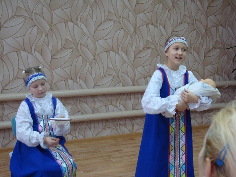 Благодаря Елене Козыревой вспомнили присутствующие далёкое детство. Колыбельная в её исполнении тронула до слёз. А от грусти до веселья один шаг, игра «Кострома» развеселила и подняла настроение. С большим вниманием отнеслись присутствующие к зимнему хороводу в исполнении всего коллектива «Ладушки», а рождественские песни-щедровки зазывали в общий хоровод.