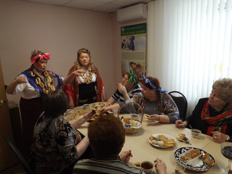 Очередное занятие слушателей университета третьего возраста факультета «В ГОСТЯХ У МАСТЕРА» было приостановлено. Совершенно неожиданно в гости к ним пожаловала Масленица! Пришла она с песнями, прибаутками, шутками и вкуснейшими блинами. А организатором этой весёлой кутерьмы стали участники мини-клуба «Ромашка» - под руководством социального работника Л.Н.Янко, из деревни Васильевка. Она уже провела праздничные посиделки с участниками клуба и приехала в гости в районный центр. Все с интересом слушали подготовленное выступление, активно участвовали и с удовольствием пробовали предложенное угощение. Счастья вам, здоровья, а радость и веселье сами придут к вам, только нужно немного постараться!