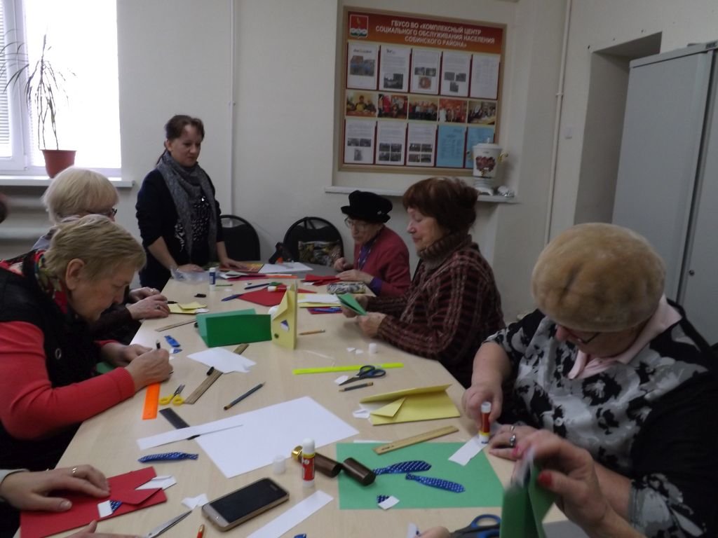 В преддверии 23 февраля, в Лакинском отделении КЦСОН социальный работник Лазарева С.Н. провела мастер-класс по изготовлению поздравительной открытки, в котором приняли участие слушатели университета «третьего» возраста. Все участники мастер-класса остались довольны процессом и результатом своего творчества.