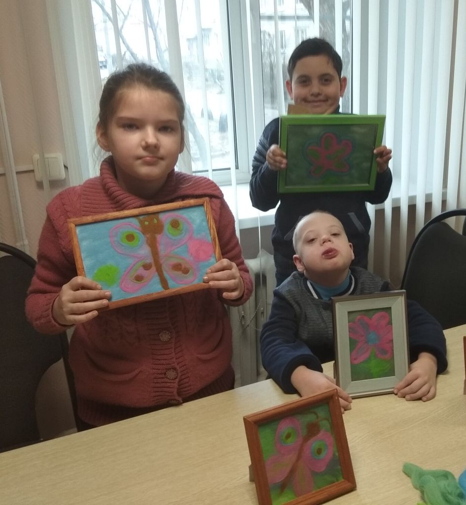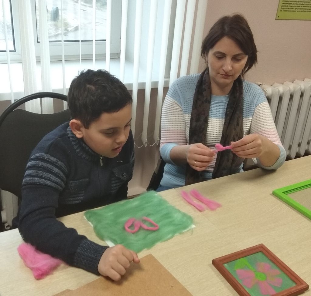 Выкладывая картину на занятии, ребята вытягивали волокна шерсти, выщипывали, скручивали и отрывали. Накладывали слой за слоем и всегда могли изменить картину, если что-то не получилось. Весь процесс имел расслабляющий и терапевтический эффект.