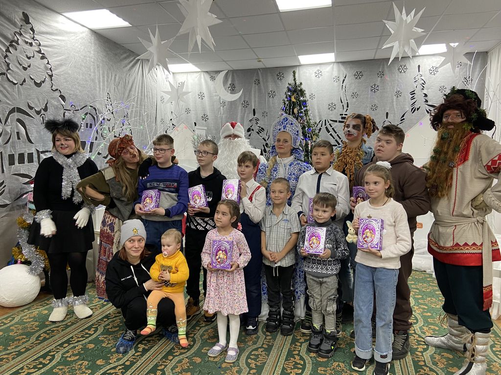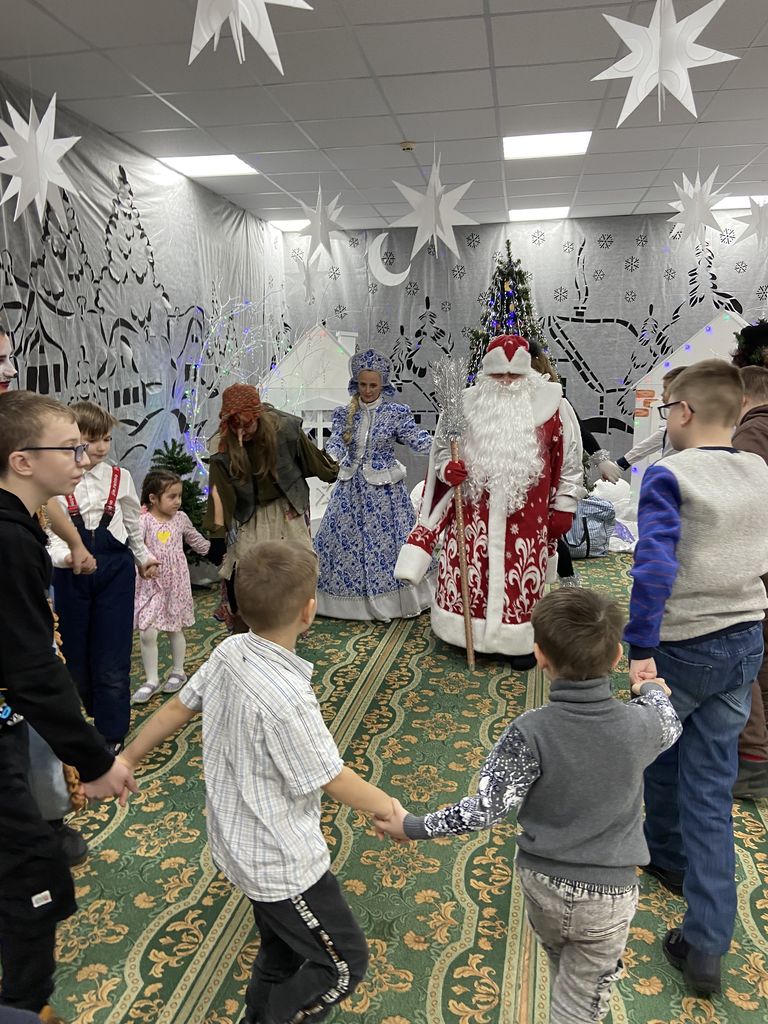 В этом году ребята отправились в путешествие по заснеженным тропинкам сказочной деревушки. Везде снег, морозные узоры, все вокруг приводит в восторг и трепетное ожидание чуда. Гостей встретили Дед Мороз и Снегурочка. С веселым настроением ребята водили хороводы, участвовали в играх Бабы Яги и Лешего, подружились с собачкой Тайгой и кошечкой Ночкой. Все получили незабываемые впечатления, заряд хорошего настроения и, конечно, новогодние подарки.