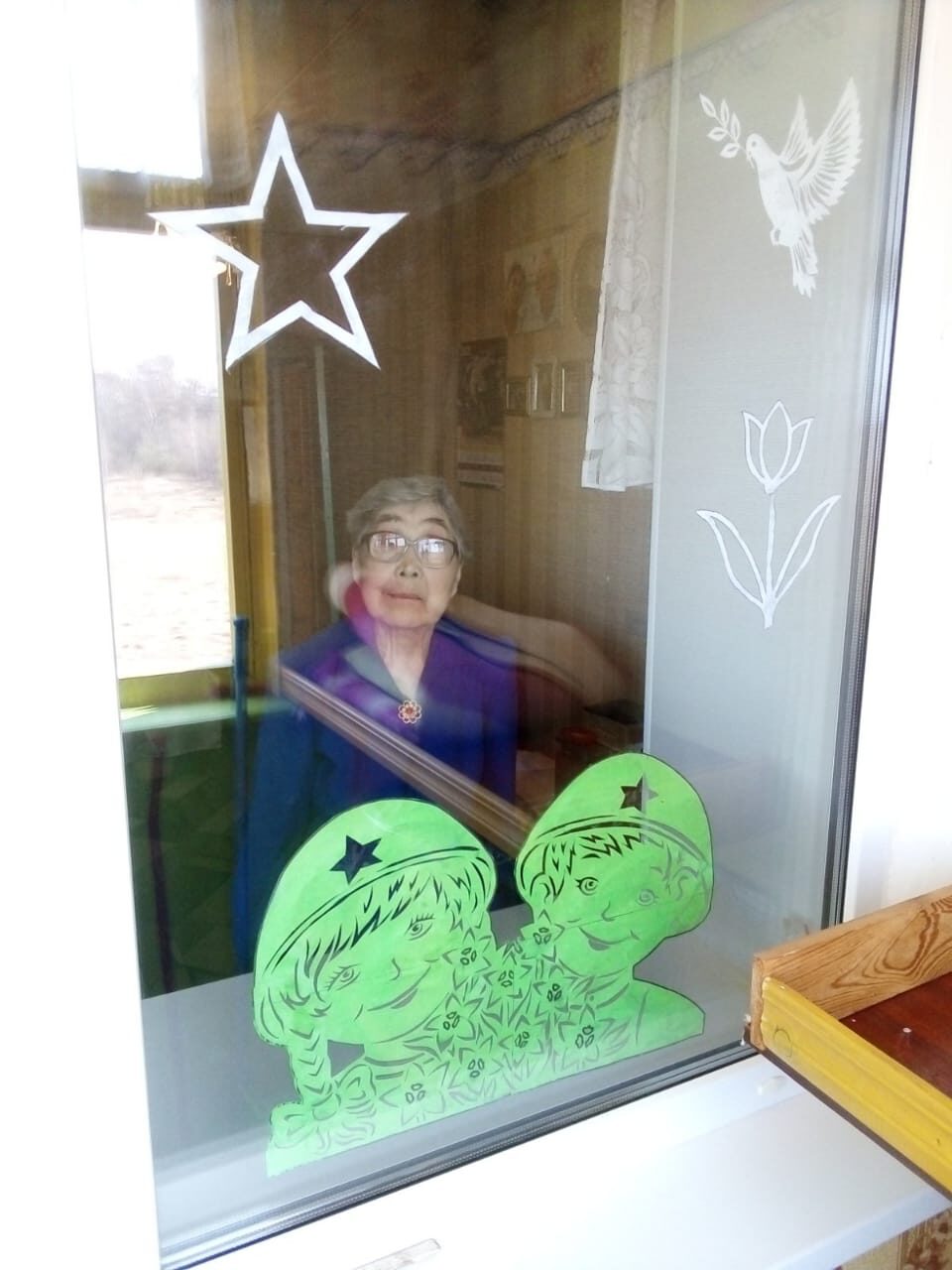 Все вырезанные трафареты украсили окна ветеранов, тружеников тыла и детей войны. Таким образом, подобное оформление не только создаёт праздничную атмосферу, но и заставляет остановиться на мгновение, задуматься, вспомнить...